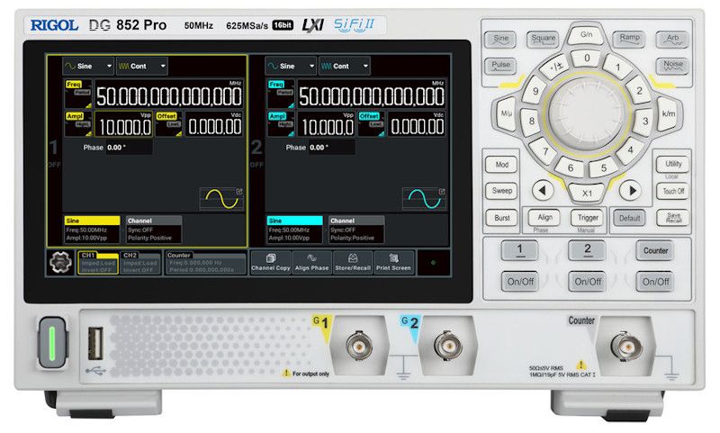 Rigol DG852 Pro - 50MHz 2-Kanavainen signaaligeneraattori vapaalla aaltomuodon määrityksellä ja suurella modulaatiovalikoimalla