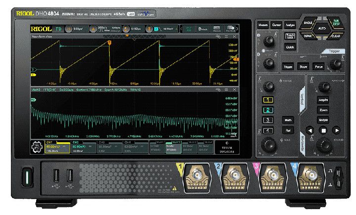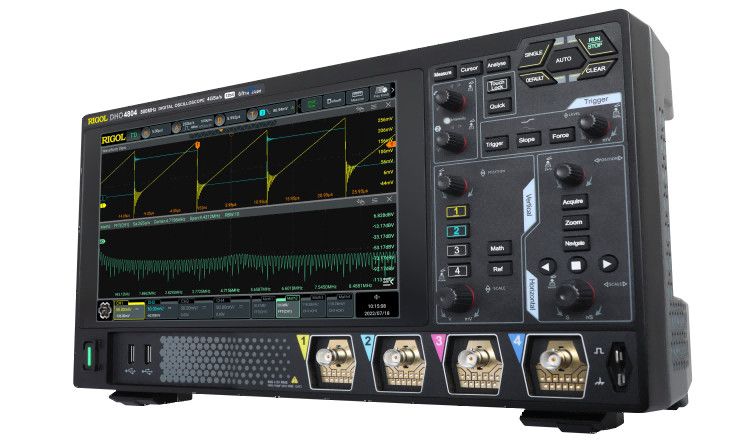Rigol DHO4804 - nelikanavainen oskilloskooppi 800MHz kaistanleveydellä, 12 bitin resoluutiolla ja maks. 4Gsa/s näytteistyksellä.