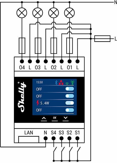 - Valmistajan malli Shelly Pro 4PM