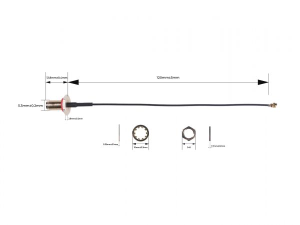 - Klikkaa tarkemmat tiedot https://www.seeedstudio.com/UF-L-SMA-K-1-13-120mm-p-5046.html