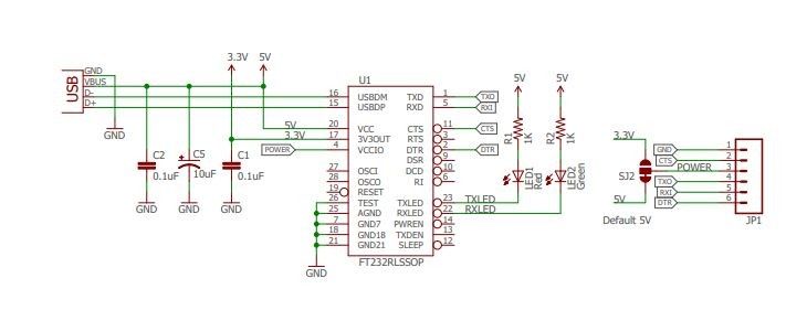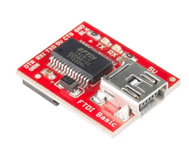 SparkFun DEV-09716 - FTDI FT232RL USB to serial IC breakout. Defaults to 5V, switchable to 3.3V