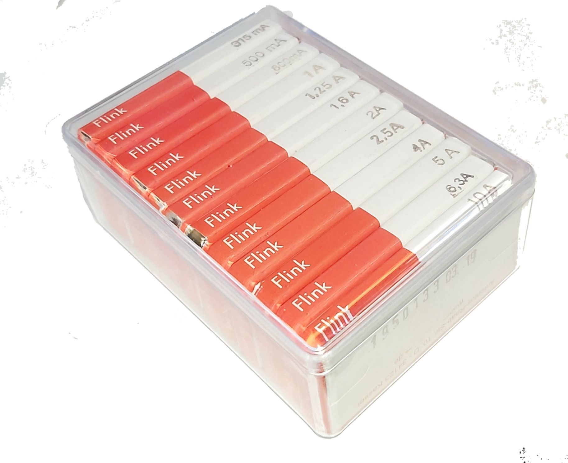 Jokaista arvoa löytyy yksi vihreällä merkittyä rasia. Yhteensä 120 kpl 6,3x32mm 60VAC lasiputkisulakkeita. Nopeusluokka nopea (=Flink F). Malliperhe Eska 632 Mukana arvot: 315mA, 500mA, 800mA, 1A, 1,25A, 1,6A, 2A, 2,5A, 3,15A, 4A, 5A, 6,3A ja 10A