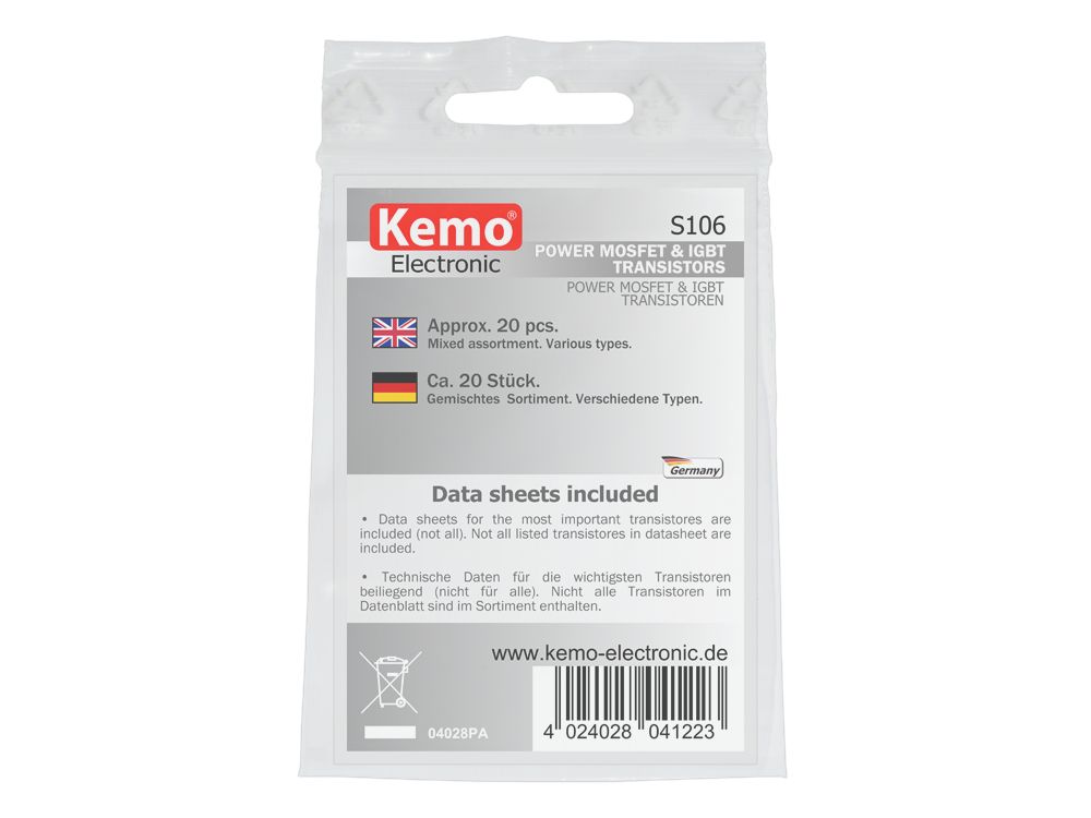 - Klikkaa tarkemmat tiedot https://www.kemo-electronic.de/en/Components/Elements/Transistor/S106-Power-MOSFET-IGBT-Transistors.php