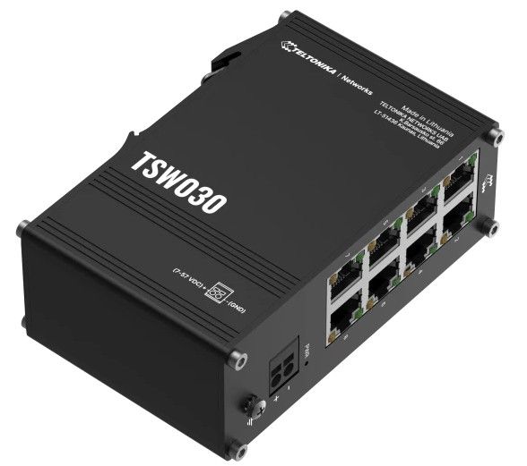 Teltonika TSW030 - 8-porttinen hallitsematon Ethernet-kytkin DIN-kiskokiinnityksellä