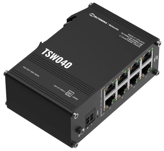 Teltonika TSW040 - 8-porttinen hallitsematon PoE+ Ethernet-kytkin DIN-kiskokiinnityksellä