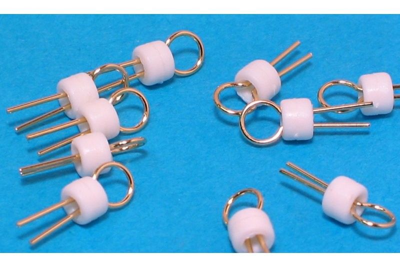 Kullattu lenksu valkoisella korotusmuovilla. Testipisteeksi piirikortille.