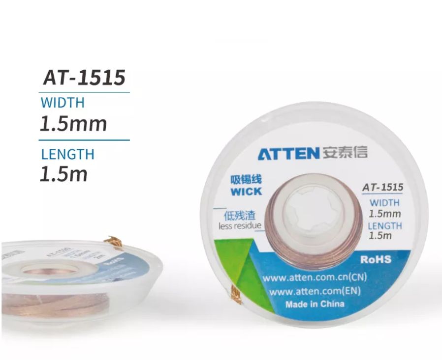 ATTEN AT-1515 - Ylimääräisen juotteen poistamiseen. Leveys 1,5mm & pituus 1,5m