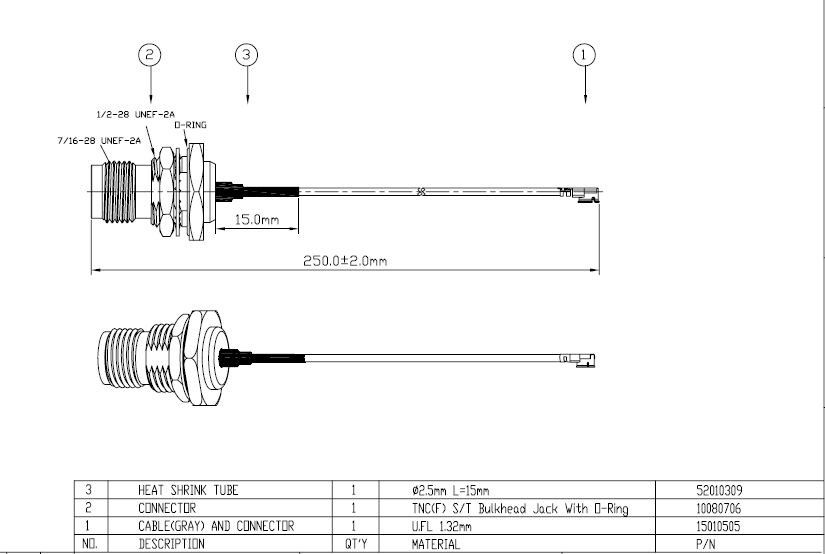 U.FL - TNC(F)ST Bulkhead Oring 1,32mm L-250mm