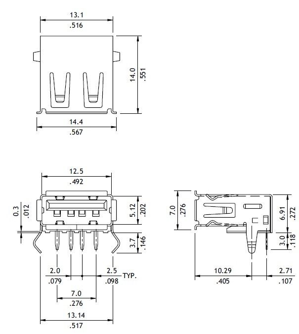 USB-A RA black pcb flash Au