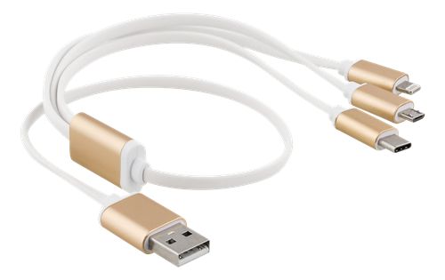 USB-KAAPELI A-USB-C/microUSB/Lightning 0,5m