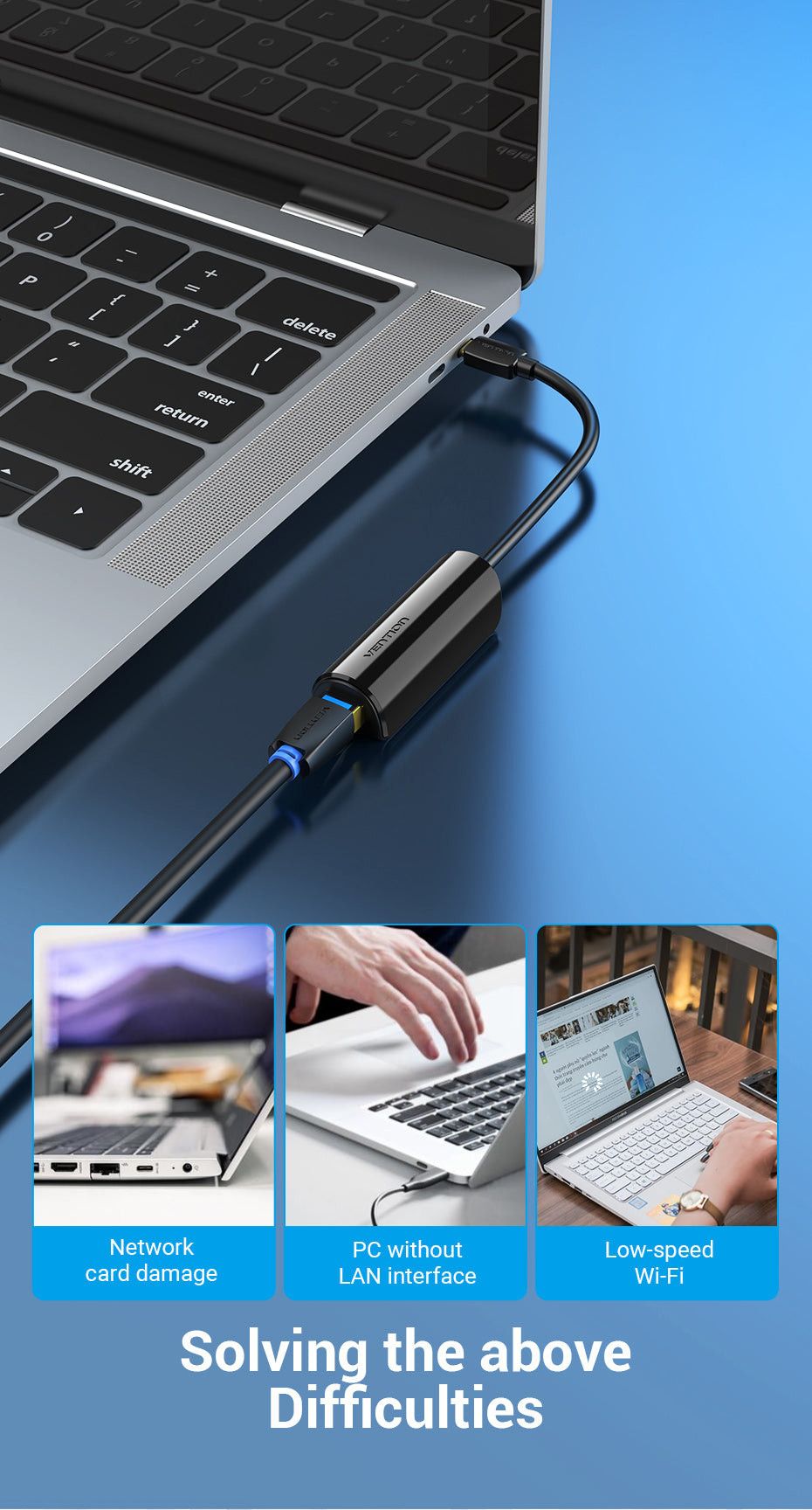 - Klikkaa tarkemmat tiedot https://ventiontech.com/products/usb-c-to-100m-ethernet-adapter-0-15m-black