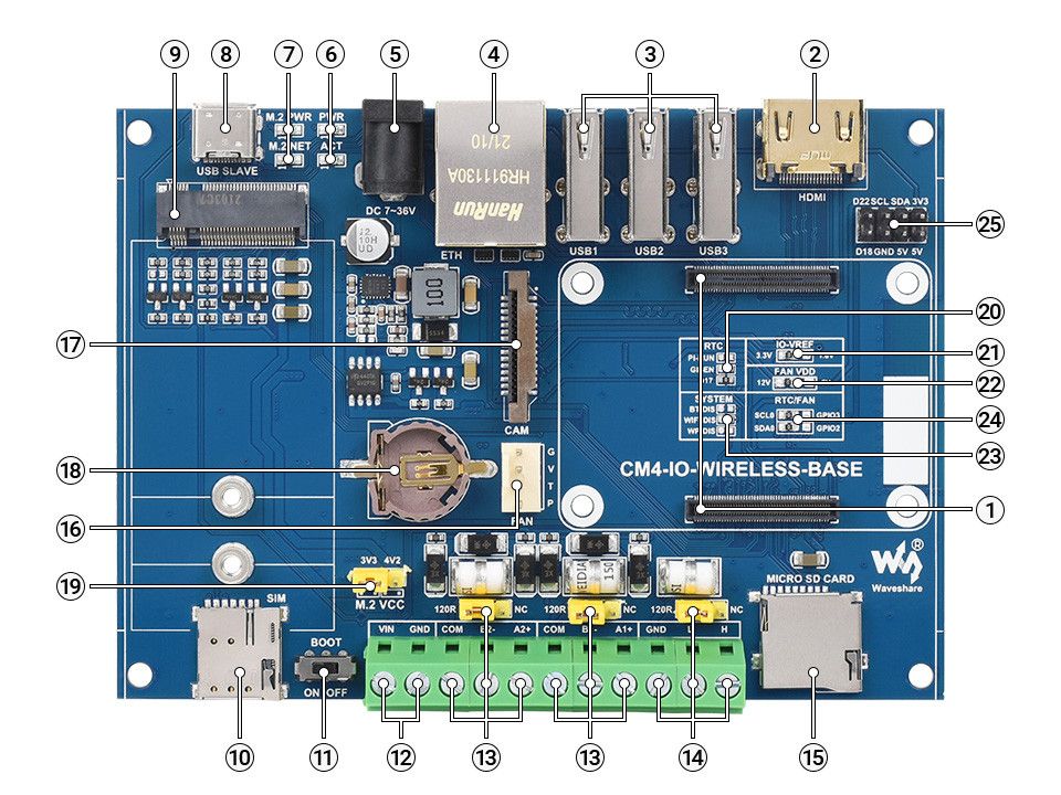 - Klikkaa tarkemmat tiedot https://www.waveshare.com/wiki/CM4-IO-WIRELESS-BASE