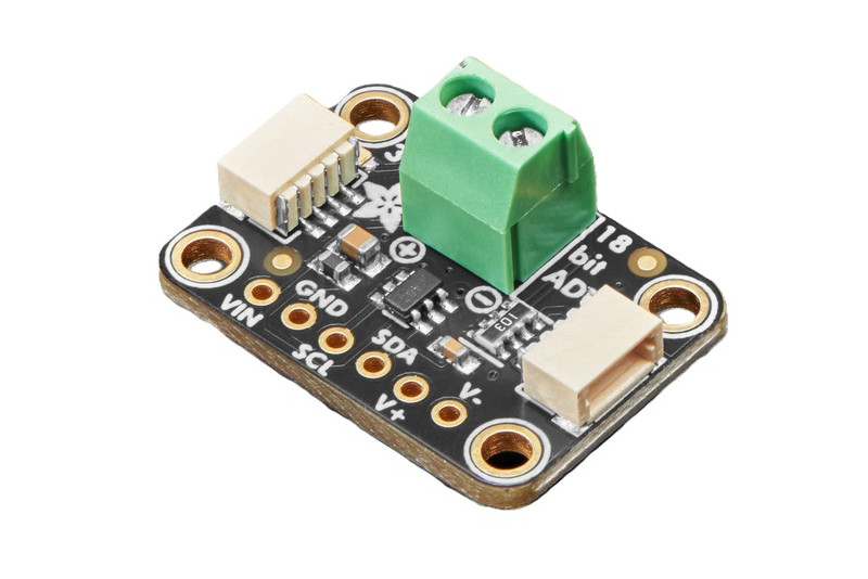 Adafruit MCP3421 18-bit ADC breakout provides an easy way to measure analog signals via I2C. Supports 240 SPS, adjustable gain, differential inputs, and built-in precision low-drift reference.