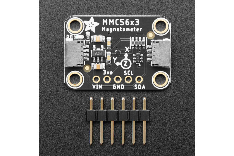 The Adafruit MMC5603 magnetometer provides a precise and versatile way to measure magnetic fields. Magnetometers detect the direction of the strongest magnetic force and are commonly used to determine magnetic north or measure magnetic fields. When paired with a 6-DoF accelerometer and gyroscope, you can build a 9-DoF inertial measurement unit that determines orientation using Earth’s stable magnetic field.