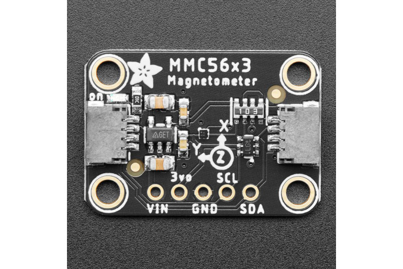 Adafruit MMC5603- magnetometer measures magnetic fields up to ±30 Gauss with 20-bit resolution. Ideal for heading/orientation sensing. Supports I2C and SPI, STEMMA QT/Qwiic connectors, and works with 3.3V/5V logic levels.
