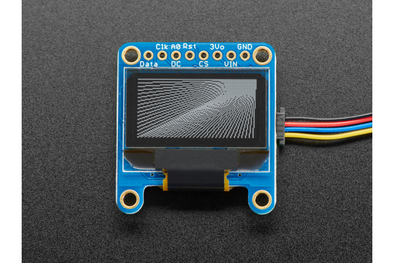The Adafruit Monochrome 0.96" OLED display delivers a bright and crisp image with 128×64 pixel resolution. STEMMA QT compatible.