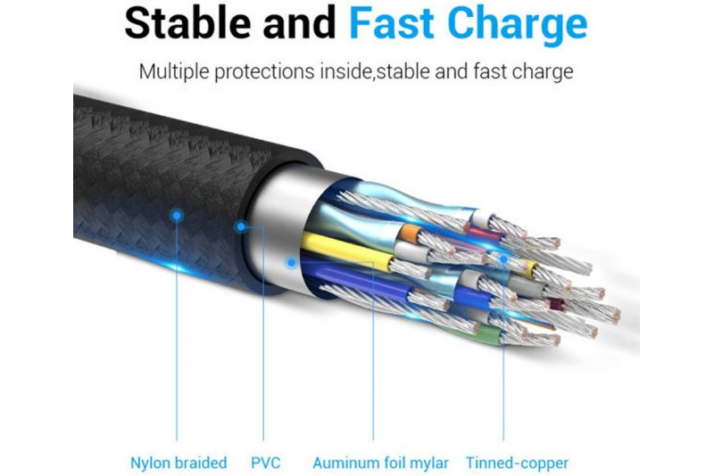 This USB C to USB C cable from Vention ensures safe charging at up to 60W for USB C type laptops/mobile phones/tablets. It supports Type C Power Delivery, also known as PD charging protocol, which saves charging time more efficiently with a maximum output power of 20V 3A.