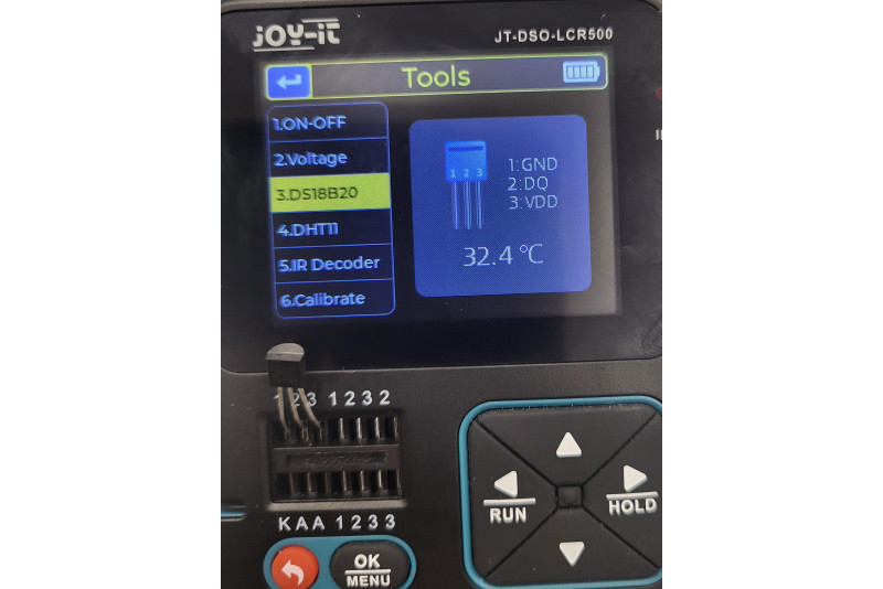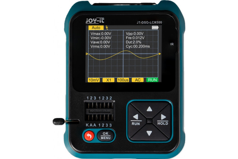 The multifunctional component tester also enables fast and automatic component identification. In addition, our DSO-LCR500 device has other useful functions, such as a signal generator, infrared signal decoder, and measurement of Zener diodes, DS18B20 sensors, and DHT11 sensors.