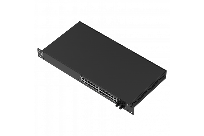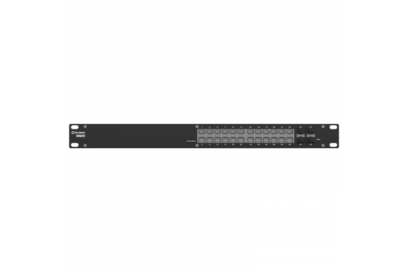 Teltonika SWM281 - L2 managed switch with added L3 functionality for complex network environments. It features 24 Gigabit Ethernet ports and 4 SFP ports, providing high bandwidth and reliable fibre connectivity