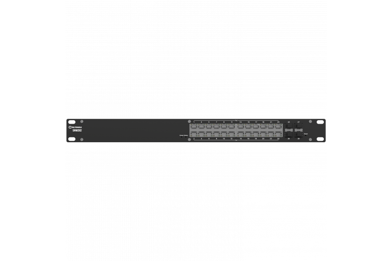 Teltonika SWM282 - L2 managed switch with advanced L3 capabilities for simplified and efficient network control. It offers 24 PoE+ ports (30 W per port, 300 W total) and 4 SFP ports.