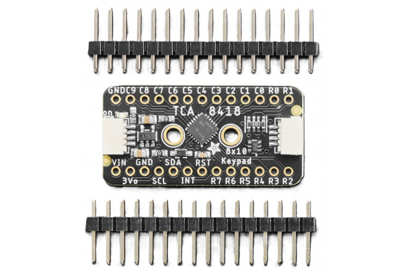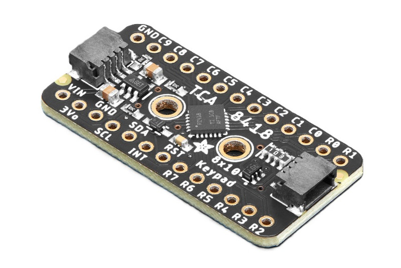 Se on GPIO-laajennin, se on näppäimistömatriisin ohjain... se on Adafruit TCA8418 Keypad Matrix and GPIO Expander Breakout - söpö ja tehokas I2C GPIO-laajennin ja näppäimistömatriisin ohjain! Tämä siru on varsin hieno, sillä se toimii I2C-monitoimityökaluna näppäimistöjen, painikkeiden tai LEDien käsittelyssä.
