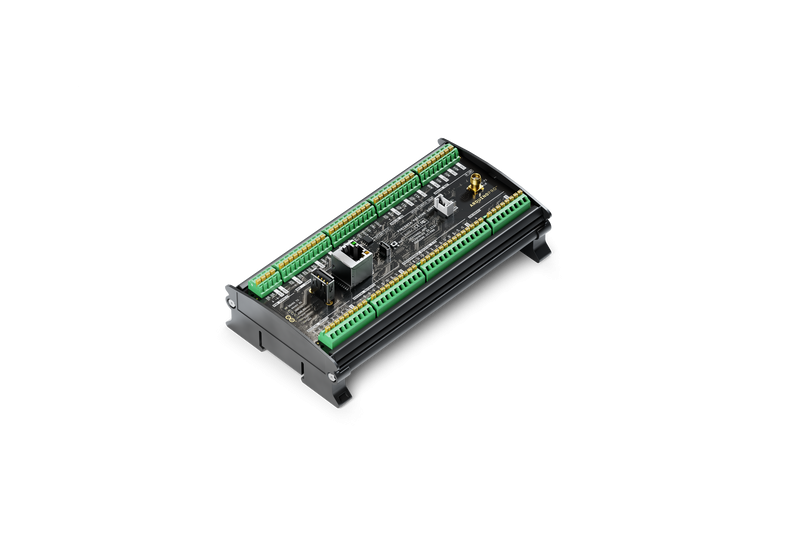 The Portenta Machine Control is a fully-centralized, low-power, industrial control unit able to drive equipment and machinery. It can be programmed using the Arduino framework or other embedded development platforms.