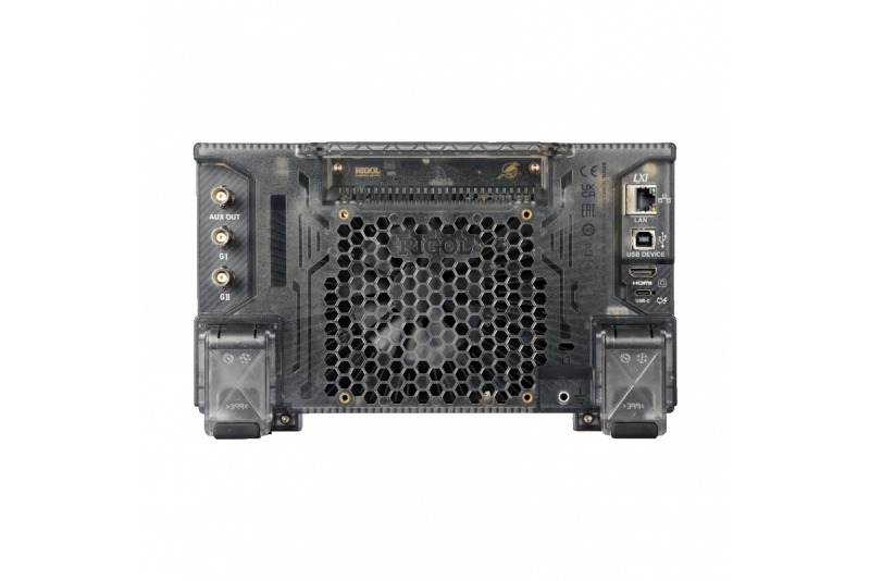 I/O-liitännät sisältävät etupaneelin USB Hostin (500 mA), takapaneelin USB Device -portin, LAN-liitännän (LXI-yhteensopiva), HDMI:n, AUX OUT -liitännän sekä AFG OUT -ulostulot. Lisäksi Probe Compensation -lähtö (1 kHz, 0–3 Vpp) helpottaa mittauskanavien kalibrointia. Pass/Fail- ja Trig Out -lähtöjen avulla käyttäjä voi ohjata ulkoisia laitteita automaattisesti mittaustapahtumien perusteella.