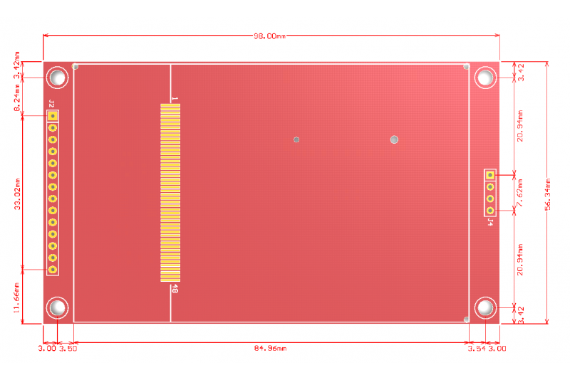 Elecrow DIS03501R - TFT LCD näyttömoduuli 480x320 65K SPI-väyläliitännällä. Perustuu ILI9488 näytönohjaimeen.
