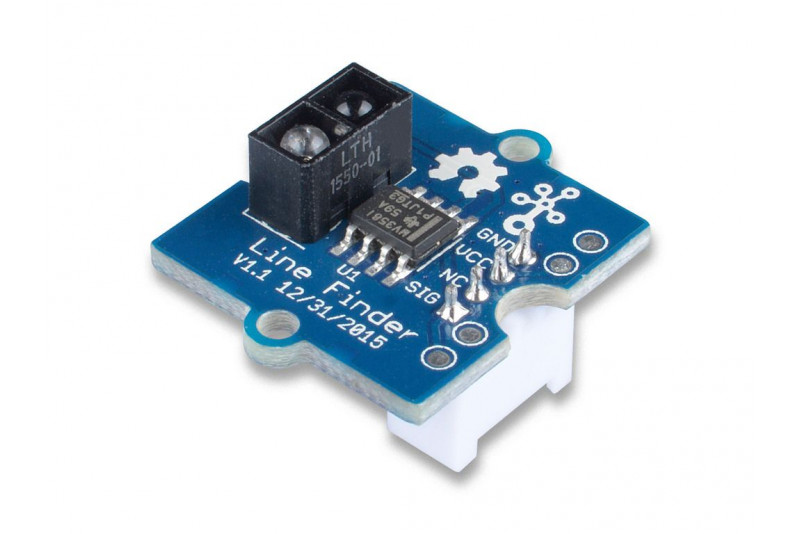 Grove-Line finder is designed for a line-following robot. It has an IR emitting LED and an IR-sensitive phototransistor. It can output a digital signal to a microcontroller so that the robot can follow a black line on a white background or vice versa.