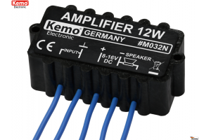 Kemo M032N - 12W yleiskäyttöinen mono audiovahvistin. Valettu moduli kestää koskeutta ja rankempaa ympäristöä.