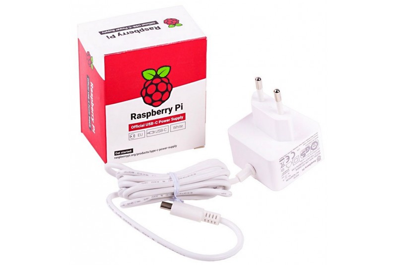Virallinen Raspberry Pi 4 virtalähde (5.1V 3A) USB-C liittimellä. Väri valkoinen.