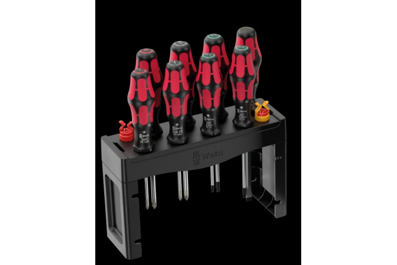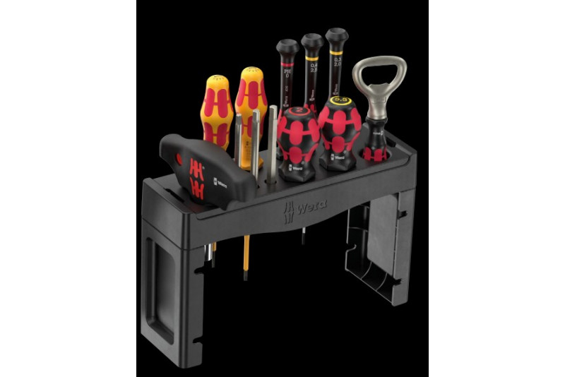 Vuonna 2025 Weran joulukalenteri sisältää kattavan valikoiman ruuvityökaluja yleisimpiin ruuviprofiileihin ja sovelluksiin. Mukana olevat kaksi telinettä voidaan pystyttää tai kiinnittää seinään.